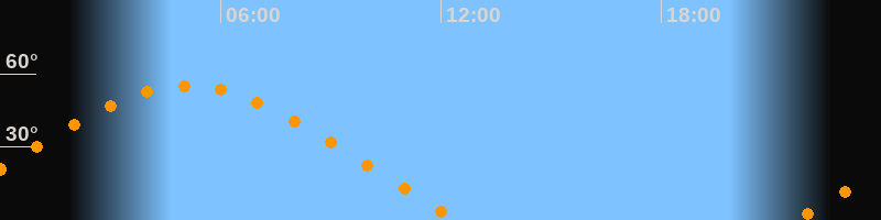 | Höchster Stand (Kulmination) | 05:06 Uhr (h = 55,1°) |