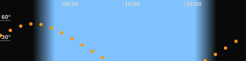 | Aufgang | 19:48 Uhr im Nordosten (αAz = 63,8°) |