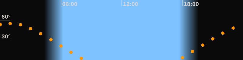 | Aufgang | 17:30 Uhr im Nordosten (αAz = 63,8°) |