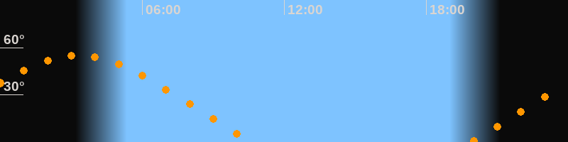 | Aufgang | 19:49 Uhr im Nordosten (αAz = 63,8°) |