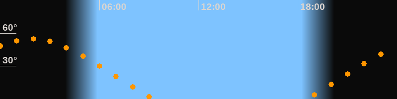 | Aufgang | 18:27 Uhr im Nordosten (αAz = 63,8°) |