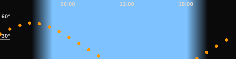 | Untergang | 10:38 Uhr im Nordwesten (αAz = 296,2°) |