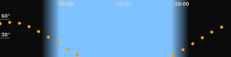 | Aufgang | 17:37 Uhr im Nordosten (αAz = 63,8°) |