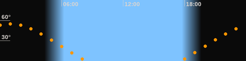 | Aufgang | 17:33 Uhr im Nordosten (αAz = 63,8°) |
