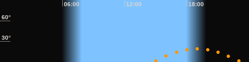 | Höchster Stand (Kulmination) | 18:59 Uhr (h = 19,2°) |
