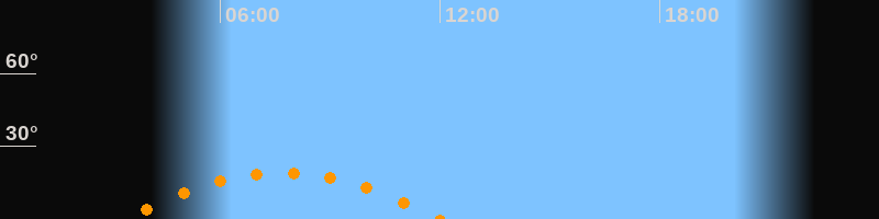 | Höchster Stand (Kulmination) | 07:42 Uhr (h = 19,2°) |