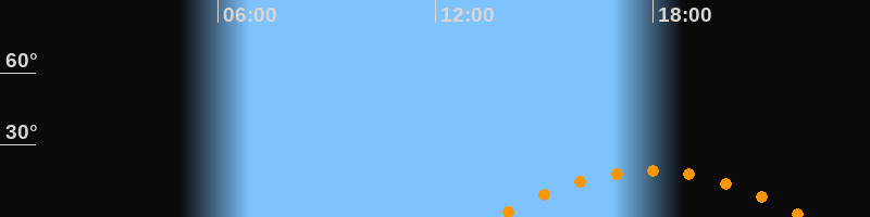 | Aufgang | 13:38 Uhr im Südosten (αAz = 122°) |