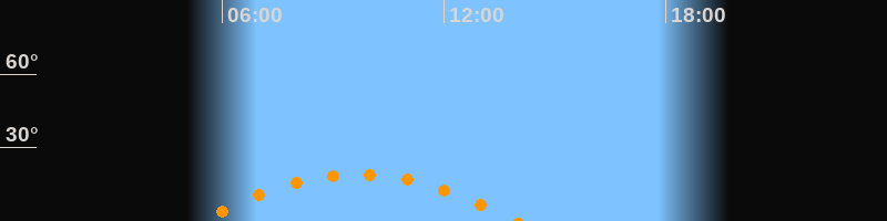 | Höchster Stand (Kulmination) | 09:40 Uhr (h = 19,2°) |