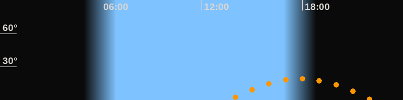 | Höchster Stand (Kulmination) | 17:53 Uhr (h = 19,2°) |
