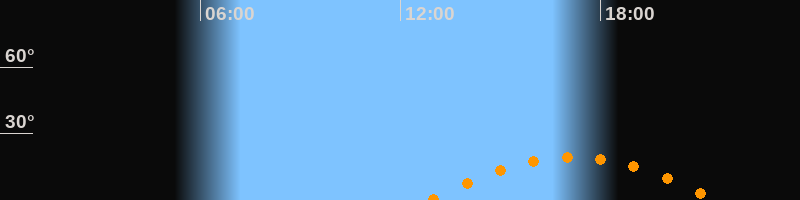 | Höchster Stand (Kulmination) | 17:09 Uhr (h = 19,2°) |