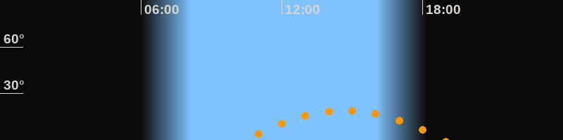 | Höchster Stand (Kulmination) | 14:40 Uhr (h = 19,2°) |