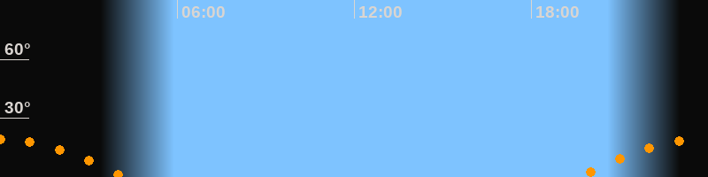 | Untergang | 04:14 Uhr im Südwesten (αAz = 238°) |