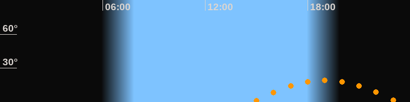 | Aufgang | 14:44 Uhr im Südosten (αAz = 122°) |
