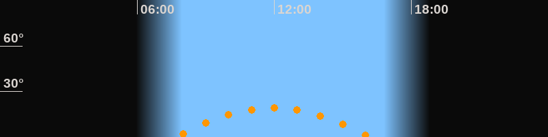 | Höchster Stand (Kulmination) | 11:56 Uhr (h = 19,2°) |