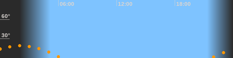 | Untergang | 06:21 Uhr im Südwesten (αAz = 238°) |
