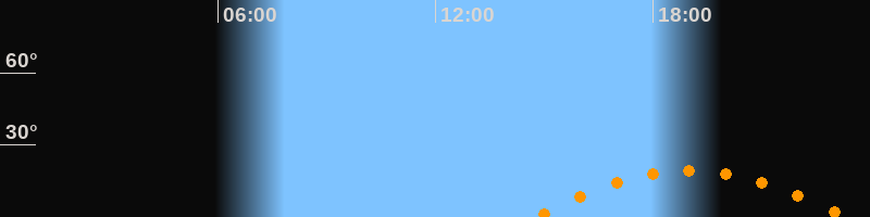| Aufgang | 14:45 Uhr im Südosten (αAz = 122°) |