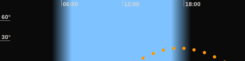 | Aufgang | 13:18 Uhr im Südosten (αAz = 122°) |
