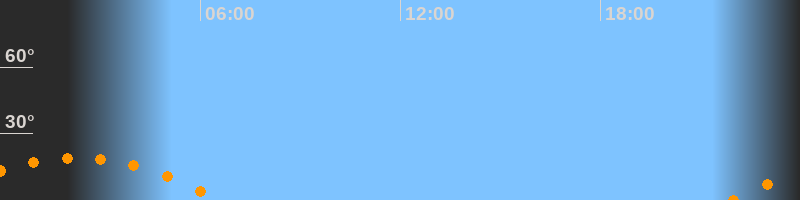 | Untergang | 06:34 Uhr im Südwesten (αAz = 238°) |