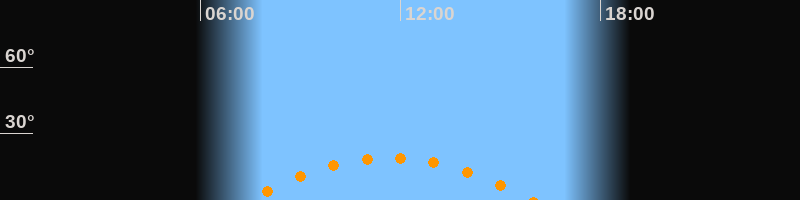 | Höchster Stand (Kulmination) | 11:40 Uhr (h = 19,2°) |