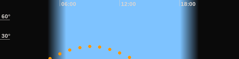 | Höchster Stand (Kulmination) | 09:07 Uhr (h = 19,2°) |