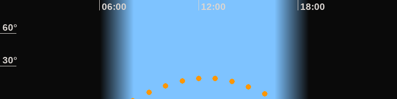 | Höchster Stand (Kulmination) | 12:24 Uhr (h = 19,2°) |