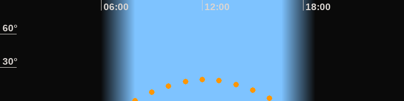 | Höchster Stand (Kulmination) | 12:08 Uhr (h = 19,2°) |
