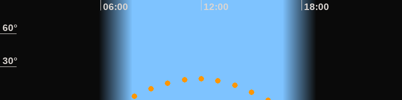 | Höchster Stand (Kulmination) | 11:46 Uhr (h = 19,2°) |