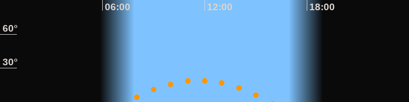 | Höchster Stand (Kulmination) | 11:38 Uhr (h = 19,2°) |