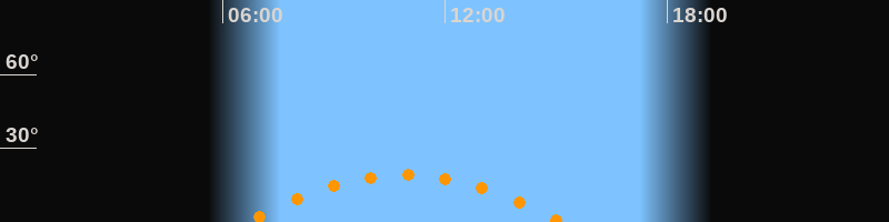 | Höchster Stand (Kulmination) | 10:55 Uhr (h = 19,2°) |