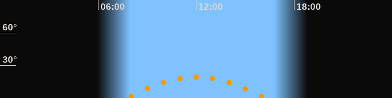 | Höchster Stand (Kulmination) | 11:58 Uhr (h = 19,2°) |