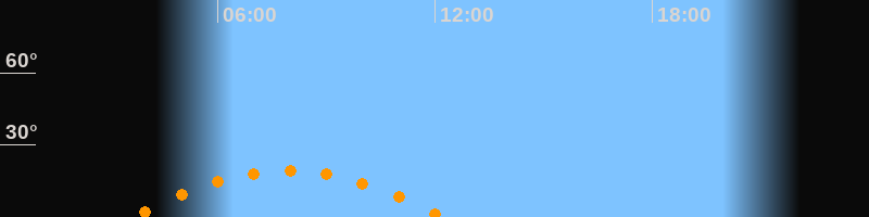 | Höchster Stand (Kulmination) | 07:56 Uhr (h = 19,2°) |