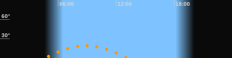 | Höchster Stand (Kulmination) | 08:52 Uhr (h = 19,2°) |