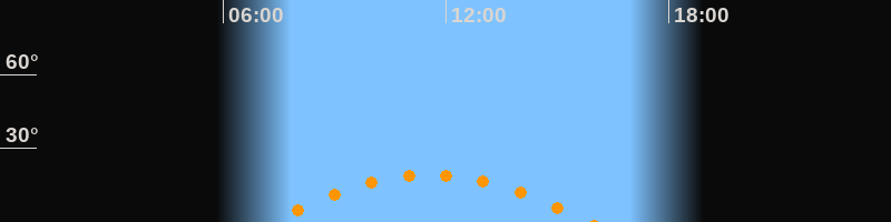 | Höchster Stand (Kulmination) | 11:35 Uhr (h = 19,2°) |