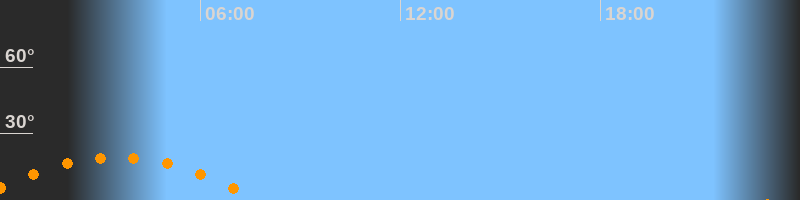 | Aufgang | 23:08 Uhr im Südosten (αAz = 122°) |