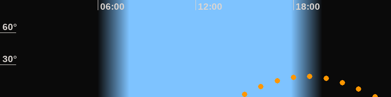 Untergang23:07 Uhr im Südwesten (αAz = 238°)