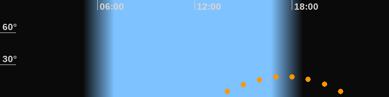 | Höchster Stand (Kulmination) | 17:31 Uhr (h = 19,2°) |
