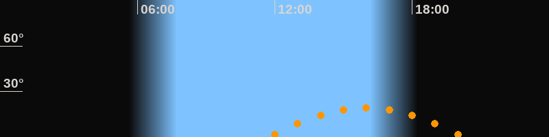 | Höchster Stand (Kulmination) | 16:00 Uhr (h = 19,2°) |