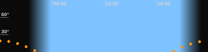 | Untergang | 04:24 Uhr im Südwesten (αAz = 238°) |
