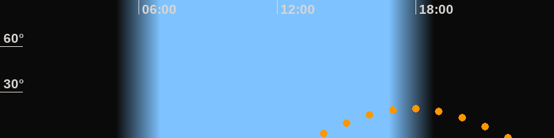 | Höchster Stand (Kulmination) | 17:48 Uhr (h = 19,2°) |