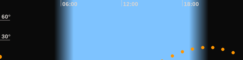 | Aufgang | 16:06 Uhr im Südosten (αAz = 122°) |