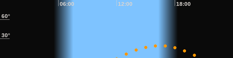 | Höchster Stand (Kulmination) | 16:23 Uhr (h = 19,2°) |
