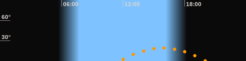 | Aufgang | 11:34 Uhr im Südosten (αAz = 122°) |