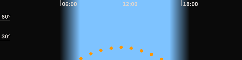 | Höchster Stand (Kulmination) | 11:55 Uhr (h = 19,2°) |
