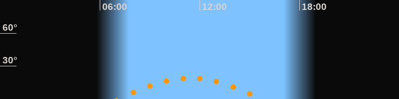| Höchster Stand (Kulmination) | 11:24 Uhr (h = 19,2°) |