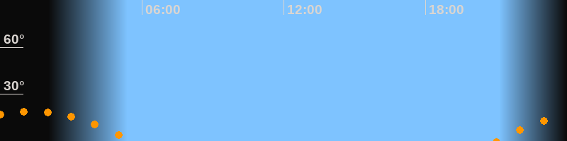 | Untergang | 05:37 Uhr im Südwesten (αAz = 238°) |