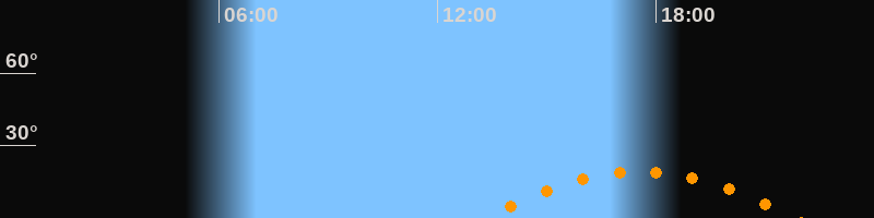 | Aufgang | 13:17 Uhr im Südosten (αAz = 122°) |