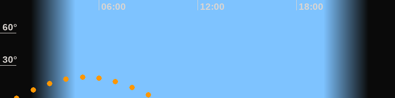 | Höchster Stand (Kulmination) | 05:11 Uhr (h = 19,2°) |
