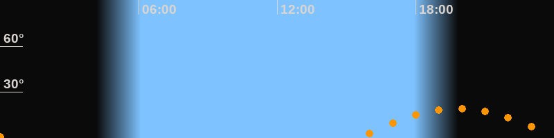 | Aufgang | 15:32 Uhr im Südosten (αAz = 122°) |