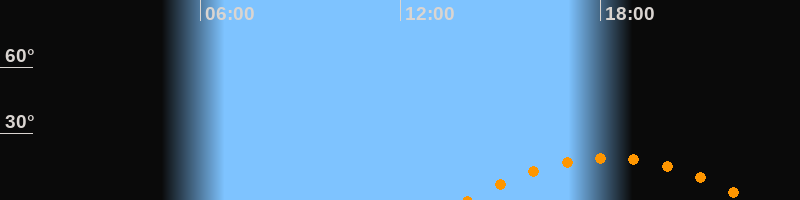 | Untergang | 22:32 Uhr im Südwesten (αAz = 238°) |