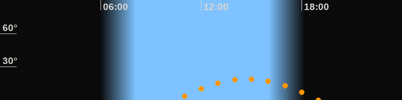 | Höchster Stand (Kulmination) | 14:45 Uhr (h = 19,2°) |
